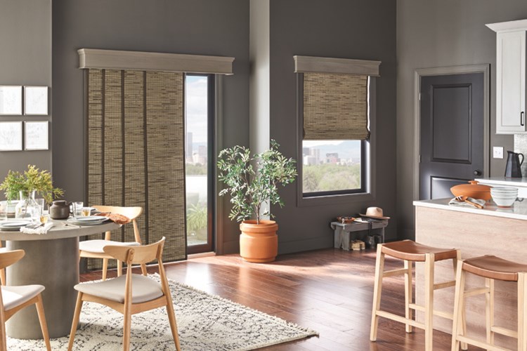 - Personal design—Think of sliding panels as a blank canvas. Choose colorful prints or woven wood panels topped with a custom valance.